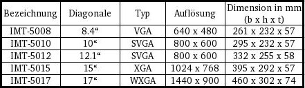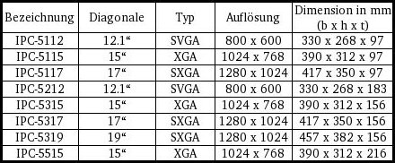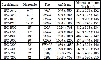 Panel PC vereinen CPU-Einheit und Monitor in einem Gehäuse und sind für den Einbau in Schalttafeln, in Schränke oder Konsolen vorgesehen. Je nach Modell ist auch der Einlass in Wände unter Putz (UP) möglich. Alle Modelle bieten einen Frontseitigen, manche sogar einen allseitigen Schutz gegen Staub und Wasserstrahlen (IP65/66/69k). Je nach Anwendung kann der Panel-PC mit einer Schutzglasscheibe oder einem Touch-Screen ausgerüstet werden. Dieser dient als Maus- und manchmal auch als Tastaturersatz. Exemplarisch sind einige Modelle abgebildet. |